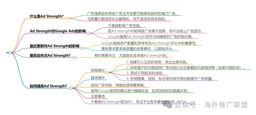 出海Google谷歌的开户、代投、推广、运营、工具、平台政策专栏全球200+国家和地区支付通道,请自行选择!文章总结了Google Ad Strength的重要性、如何影响Google Ads以及如何改善Ad Strength。首先,Ad Strength是用来帮助广告商根据Google数据开发出更有可能表现良好的广告,但它只是一个指标,而不是实际排名。接着讨论了Ad Strength对Google Ads的影响,以及最近的更新如何影响Ad Strength。最后,文章提出了几点高级建议,包括创建引人注目的信息、测试不同的信息变体、利用所有可用的资源等,以提高Ad Strength。简而言之,Ad Strength是一个衡量广告质量的指标,它并不直接决定广告的表现。尽管如此,许多广告商发现他们的“差”广告实际上比“优”广告表现得更好。此外,低Ad Strength不代表你的广告会受到限制或无法展示。Google强调,Ad Strength主要是一个基于内部最佳实践的指标,而不是实际排名。对于如何提高Ad Strength,有几个高级建议:创建突出业务优势的信息。回答客户的问题或将广告与他们正在查看的内容相关联(如果可能)。测试不同类型的信息变体。利用所有可用的资源,包括图片、视频、徽章、位置等。这些最佳实践大多数情况下不会直接关联到Ad Strength,但它们对于提高广告效果非常有帮助。如果你对你的广告表现满意,你可能就不会太在乎Ad Strength了。如果你没有得到你需要的结果,也许可以参考Ad Strength改进栏目中的指导意见,看看Google给出的建议是否有用。此外,还有一些新的标题建议,这些标题由Google认为可以更好地展示这个广告变体。也许它们有效,也许它们无效,但至少我有一些新的想法,这是我自己没有想到的。对于Performance Max,可以现在在编辑器中直接创建各种新资产,无需做太多工作。几乎没有借口说没有更多的广告资产来提升你的分数。不要仅因为Google推广而优化到Ad Strength。不要忘记,Ad Strength并不是你的KPI。专注于你的商业KPI,并使用Ad Strength作为你需要改进的地方。可提供海外社媒开户和代投:Facebook&ins、Google&YouTube、Twitter、TikTok、line日本&中国台湾、Yahoo&smartnews(日本)、Naver&kaKaoTalk(韩国)、Linkedin、VK&yandex(俄罗斯);可提供海外社媒营销saas管理工具:Telegram/WhatsApp/line/vber/ins/facebook等;可提供海外手机厂商&开发者流量:覆盖越南、巴西、印度、菲律宾、印尼、土耳其、非洲、中东(巴基斯坦、孟加拉)等,提供海外地区各平台各领域网红KOL推广,不限产品类型;请点击联系我们(含海内外联系方式)!关注“海外推广联盟”的大大们点右下角,求个"分享、点赞、在看",祝您发财运👇祝您发财运👇👇👇👇