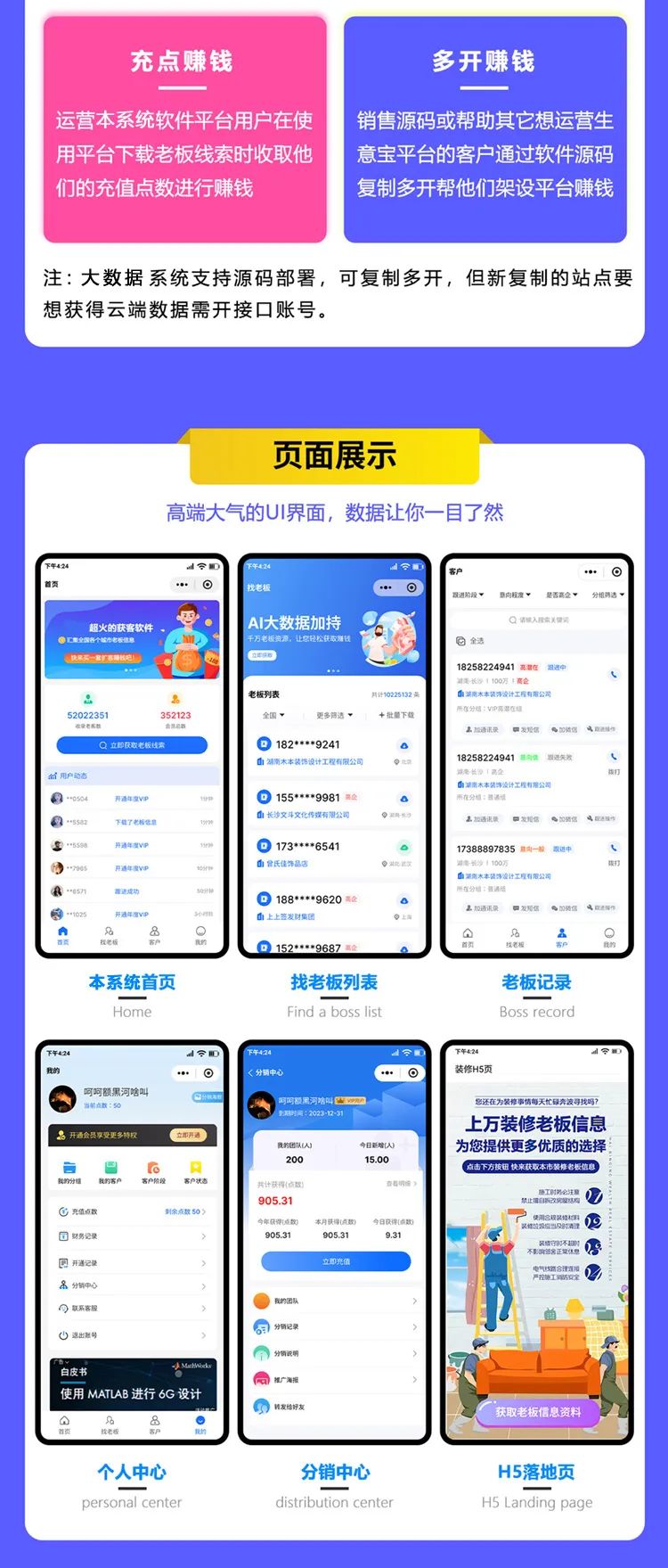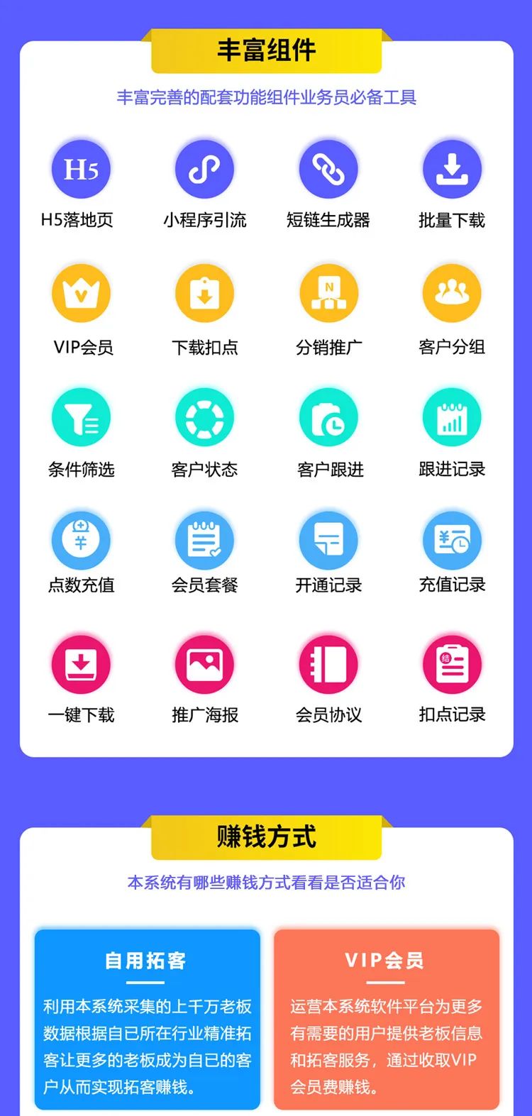 大家都知道现在生意难做,而付费投放广告成本高转化效率也不能保证,因此,直接买我们搭建好的系统会员或条数,自己通过他根据自己的行业,找到全国该行业的老板推广自己的产品进行拓客,可大大降低推广成本提升业务拓客能力,实际上就是一种赚钱模式。