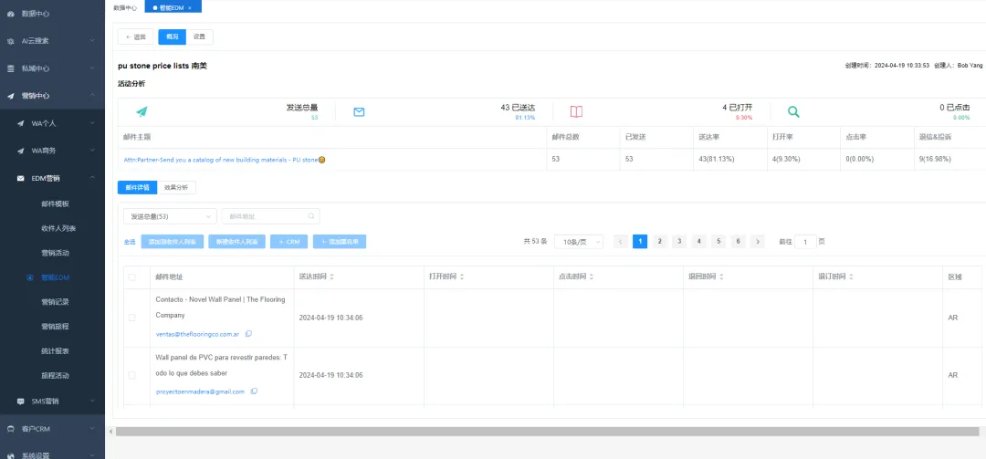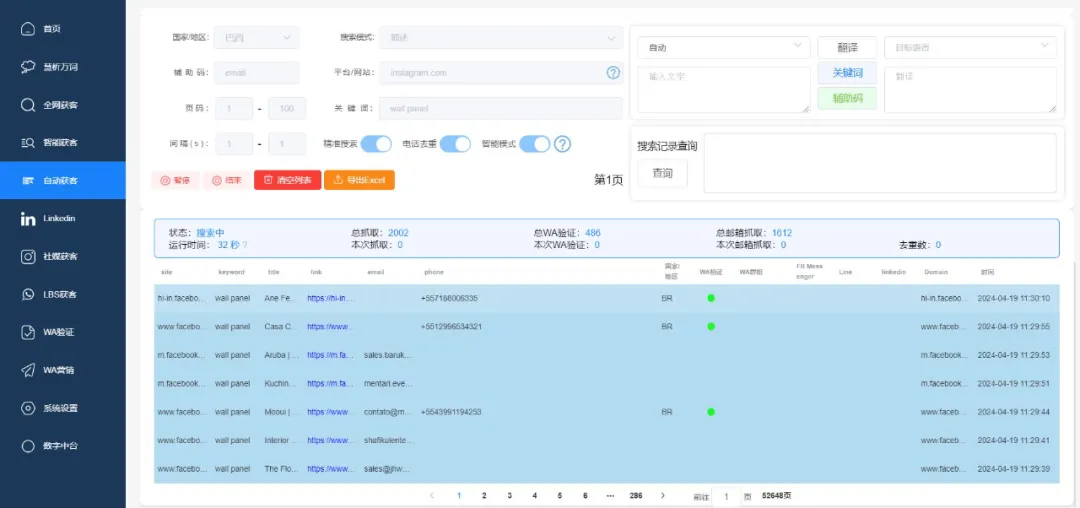 每天到办公室打开电脑的第一件事,就是打开系统的【自动获客】功能,设置好关键词,提前准备好营销用的邮件模板。剩下就是机器人的事了。系统会根据所设置的条件,进行搜索引擎的自动搜索,将原本需要搜索几百上千次的搜索任务,自动排列组合交给系统。随后便可以将系统收于后台,自动进行客户搜索,自动推送营销邮件。