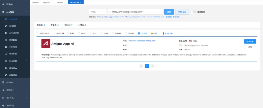 你可以锁定城市,一键获取想要的买家资源,也可以输入具体的地址,围绕地址40KM内进行买家地毯式开发。最重要的是,资源获取到的同时,出海燕已经把买家的详细数据做好了聚合,你直接查看即可直达决策者。