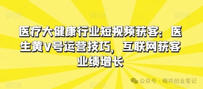 医疗大健康行业短视频获客:医生黄V号运营技巧,互联网获客业绩增长
