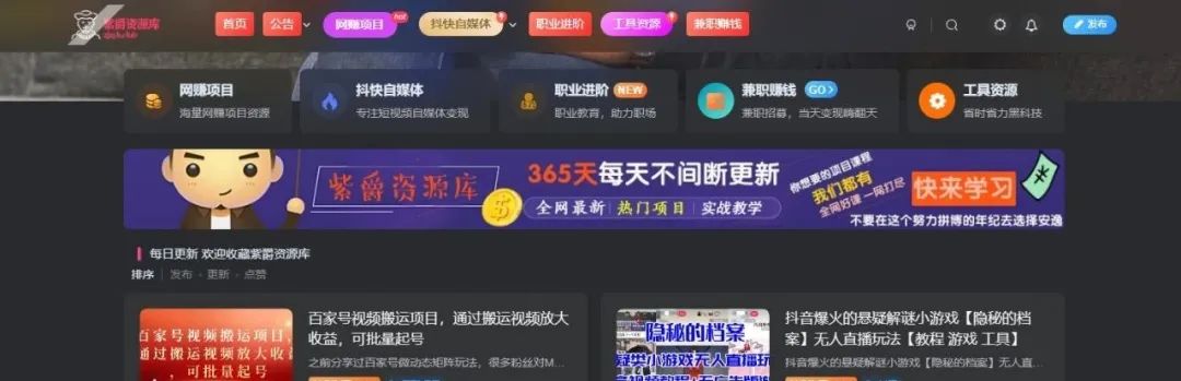 惜搏笔记官方网站紫爵资源库已上线,囊括了目前所有的网创项目玩法,项目上千个,每天更新最新网创资源!可以说,目前主流的网赚课程,这里都有。