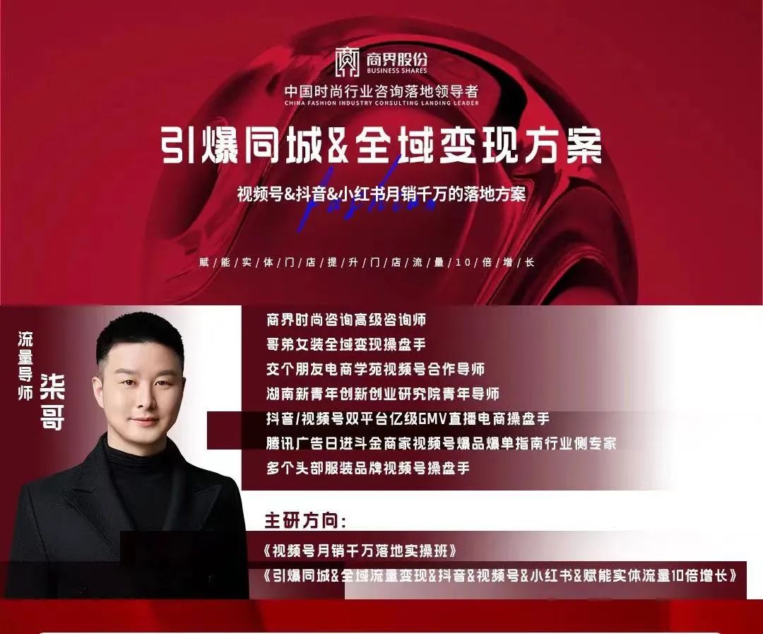 《引爆同城流量&全域变现方案》是从抖音、短视频、视频号、小红书、三大平台结合赋能服装实体门店,提升门店流量10倍增长 。