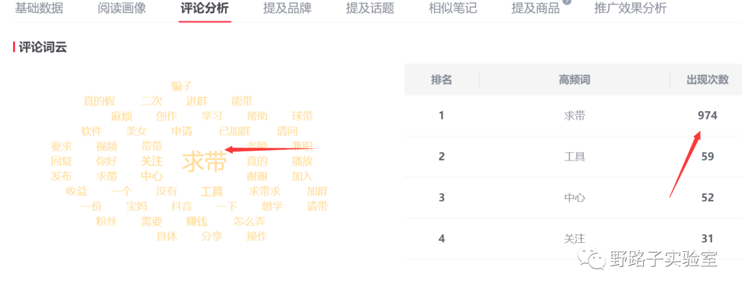 还有一种方式,直接笔记热评,比如关键词“求带”或者“带带我”,这类型评论内容,搜索这类关键词评论的高频词