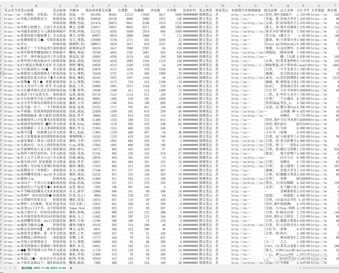 然后找到相关笔记,批量导出这些和自己行业相符的笔记,手动去做营销,手动营销我们目前除了私信,别的没在做,这个给不上太好方式,总之大力也会出奇迹。