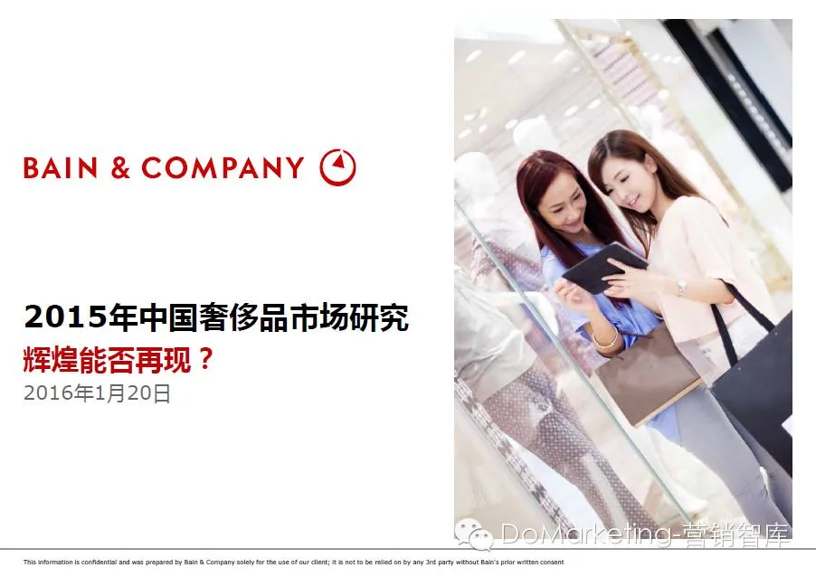 日前,贝恩咨询发布了针对中国奢侈品市场的最新研究报告,虽然2015年奢侈品市场上负面消息不断,但贝恩的研究报告却仍然对2016年表示乐观,值得所有关注奢侈品品牌和时尚营销的市场人关注。