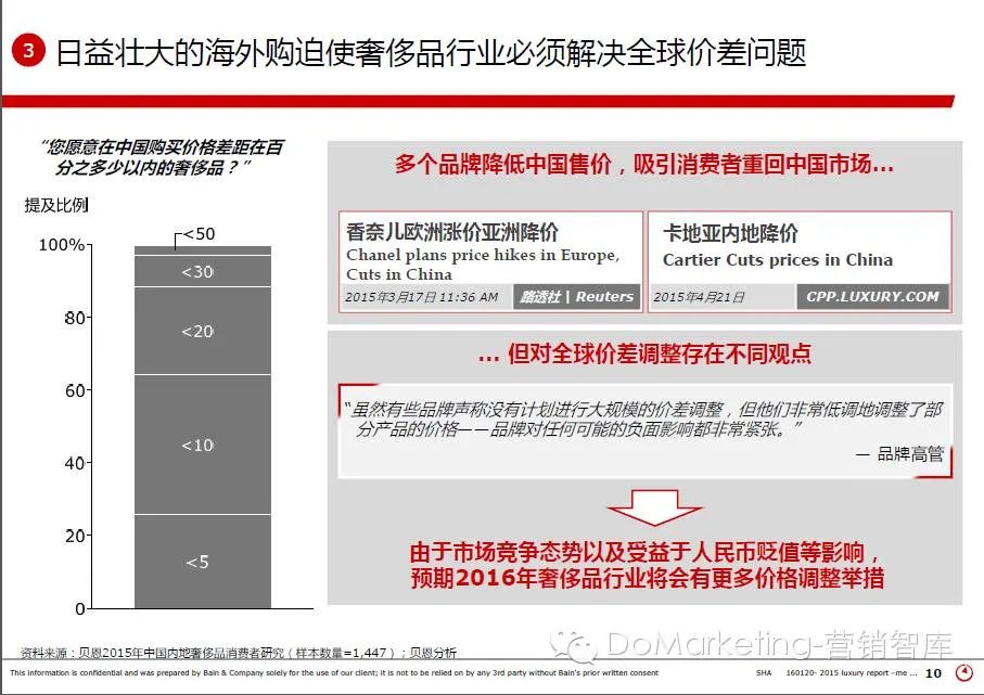 全球价差调整和全球性的损益表考:全球价差调整是解决海外购问题的主要方案;部分品牌可能会在某些产品系列的价格上进行调整;同时,需要将“中国消费者整体损益表” 与“中国区损益表”结合起来考虑,以鼓励并认可本地团队在品牌建设和中国消费者互动方面的付出与努力。