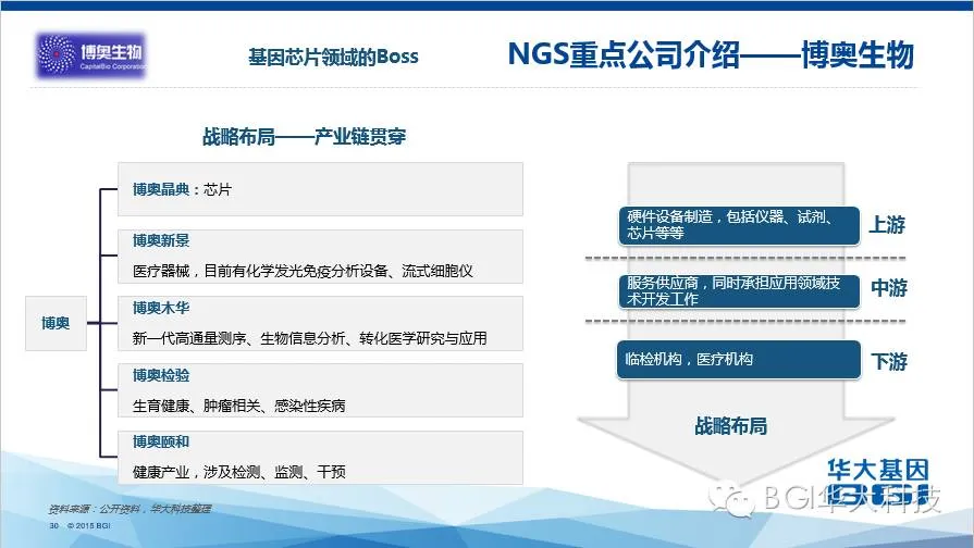 众多公司遍布各细分市场领域,如着眼全产业链布局的华大基因、贝瑞和康、达安基因、博奥生物等,以及在基础科研服务、生育健康、肿瘤个体化诊疗、生物信息分析以及大数据云计算等领域表现突出的优秀代表。