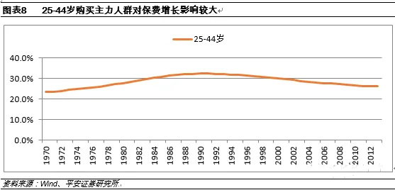 美国寿险公司经历过两次利率风险,但都没有对寿险业产生很大的影响。第一次是在1940年,即第二次世界大战期间,美国经历了一次利率下滑,保险监管机关相应地降低了责任准备金评估利率,造成保险公司准备金提高,对寿险公司产生了一次冲击。第二次是在1990年。美国寿险公司在80年代高利率环境下销售了一些高预定利率更缴产品。1990年市场利率逐步降低,保险监管机关再次降低了责任准备金评估利率,公司提取准备金增加,对财务状况产生负面影响。对于多数寿险公司来说,由于资产负债匹配较好,这些损失被长期固定收益投资项目增值部分所抵消。对于一些资产负债管理较差的公司,由于投资收益低于保证收益而造成了亏损,出现了偿付能力危机。为保证寿险公司偿付能力充足,美国保险监管机关令他们增加资本金,或出售其业务,帮助部分公司度过难关。但是短期利率环境的变化对寿险保费的影响并不明显,这是因为寿险公司持有的债券仓位比较大,一般持有的固收投资在80%以上,因此利率环境短期的波动对于保险公司的债券配置结构影响不大。但是长期利率环境对于寿险公司保费的影响却很大。1、稳定的高利率环境对保险公司的寿险保费呈现正向贡献以1年国债为例,1970-2000年,美国市场利率环境维持在5%以上水平,与此对应的是寿险保费呈现单边上涨的过程。我们可以这样理解,保险公司投资组合基本不存在较大的再投资风险。尤其是1985-2000年期间,利率市场波动较小,稳定的高利率环境对于保险公司的投资更显重要,这一期间保费的增速也较高。2000年后1年期国债进入低利率环境时代,长期低利率环境使得保险公司的再投资风险增加,理财类保险产品投资组合的整体收益率是下降的,因此2000年之后,美国寿险公司的保费增长相对缓慢,而且波动较大。在这其间的2004-2008年,利率回升,保费呈现阶段性增长,2008年利率达到低点,保费负增长达到峰值。我们发现1970-2012年其间寿险保费增长曲线与其间纽约交易所综合指数的曲线在形状上具有相似性。我们认为由于保险资产属于金融资产的重要组成部分,同时也与同期的GDP呈现同向相关性。尤其是1985年后,养老金发展较为迅速,因此美国寿险公司保费增长与股市指数变化表现为较强的相关性。我们认为出现这种情况的原因为美国保险购买人对金融市场的波动比较敏感,整体看保费变化滞后资本市场一年变化。这种敏感性在金融危机发生时候表现的更加明显,一旦金融危机造成普通老百姓金融资产缩水,赚钱效应消失,美国普通居民就会减少在保险上的投入。2000-2001年、2008年情况都是如此,从时间上看,保费对资本市场的变化反应要慢一些,这个滞后的时间是一年。2008年金融危机发生,2009年保费才呈现明显的下滑状态。实际上我们在对资本市场波动进行研究的过程中,我们并未考虑资本市场波动对存量保险资产的影响,我们只是研究资本市场变化对保费流量的影响。这说明资本市场波动对当年度保费的影响,更多的通过影响消费者的购买行为而发生作用。经济稳定增长为人均可支配收入的最基本来源,而资本市场与经济稳定增长也呈现正相关关系,因此在经济繁荣的事情,资本市场收益率水平较高,在这一时期,保险行业也会呈现繁荣的景象。但是往往在这一时期,却为未来保险行业埋下隐患。核心原因是保险公司在繁荣时期,往往会增加高利率保单的销售规模,在经济繁荣的时期,投资收益能够覆盖高利率保单的成本,但是一旦经济进入低利率环境,利差就会缩窄甚至出现负利差。24-64岁人群是收入稳定且对保险具有明显需求的人群,因此如果在某一历史时期,24-64岁人群在人口中的比例呈现上升或者稳定的局面,这一期间的保费增长就会表现出较强的动力。这一时期的人群往往在为65岁以后储备养老资金和医疗保障,因此对保险的需求最大,而且有能力去购买保险。在利率下降的初期,并不会对保险公司保费产生太大影响,这是因为在利率下降过程中,保险公司新增保费虽然配置在收益相对较低的债券上,但是保险公司投资组合的收益率仍然高于市场,因此这段时期保险产品的收益率反而跑赢同期市场。但是一旦利率进入低利率或者零利率环境并持续一段时间,保险公司投资组合中的高收益资产占比越来越小,保险公司利差损风险越来越大,再投资风险增加,这个环境对保险业的杀伤力更大,如90年代之后的日本。资本市场变化往往与经济环境和GDP变化相关,因此不会单独对保险保费产生影响,而保险投资组合收益率变化短期不会对保费变化趋势构成影响。社会保险制度对于商业保险的影响很大,台湾、美国都是典型的法定保险程度较低,从而推动普通民众增加对商业保险,包括对高端服务、养老保障和理财的需求。注:本文源自平安证券非银金融首席分析师缴文超所作研究报告,原题《低利率专题——海外(美、日、台、英)保险研究》,有删节调整。