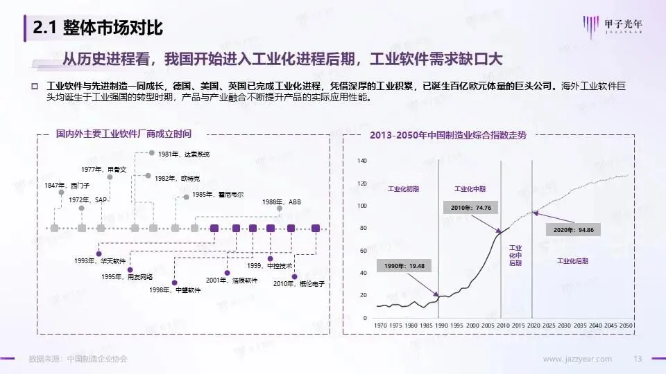 我国工业软件行业正处于“换道超车”历史机遇期,同时在制造业向智能化转型的背景下,国产工业软件厂商正迎来更多的突围机会。甲子光年智库重磅推出《中国工业软件市场研究报告——智能制造与工业软件的实践研究》。