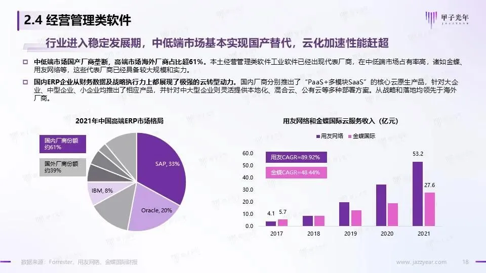 经营管理类软件:行业进入稳定发展期,中低端市场基本实现国产替代,云化加速性能赶超