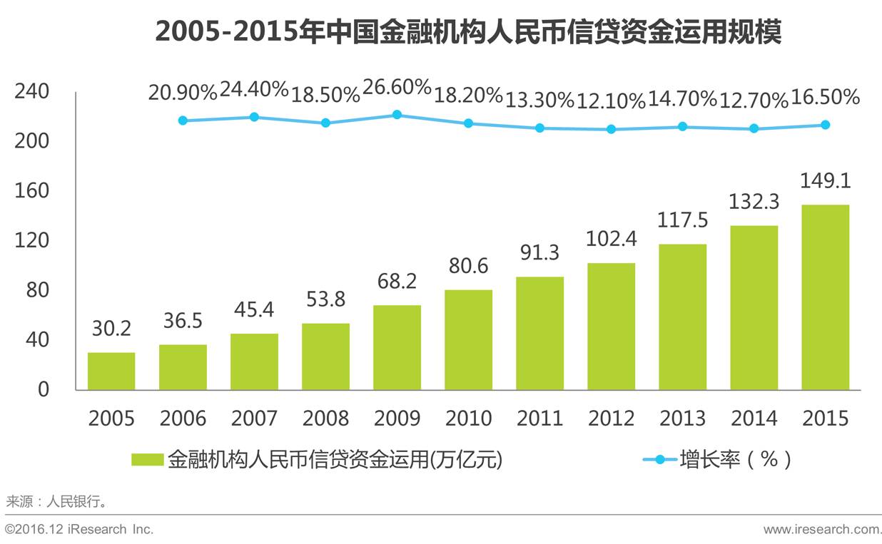 长期以来,我国传统金融受到政府过度保护,导致我国传统金融机构业务模式较为僵化,不能有效覆盖中小企业、大学生、蓝领等新兴群体,使得这些有实际信贷需求的群体无法获得贷款。2010年后,我国信贷运用增速骤然下降,传统金融遭遇发展瓶颈。但从2010年至今的这一段时间,正是互联网消费金融腾飞的阶段。互联网消费金融机构利用大数据等新技术,鉴别这部分空白人群的信用水平,填补了传统金融行业的空白市场,推动了消费金融产业的异军突起。