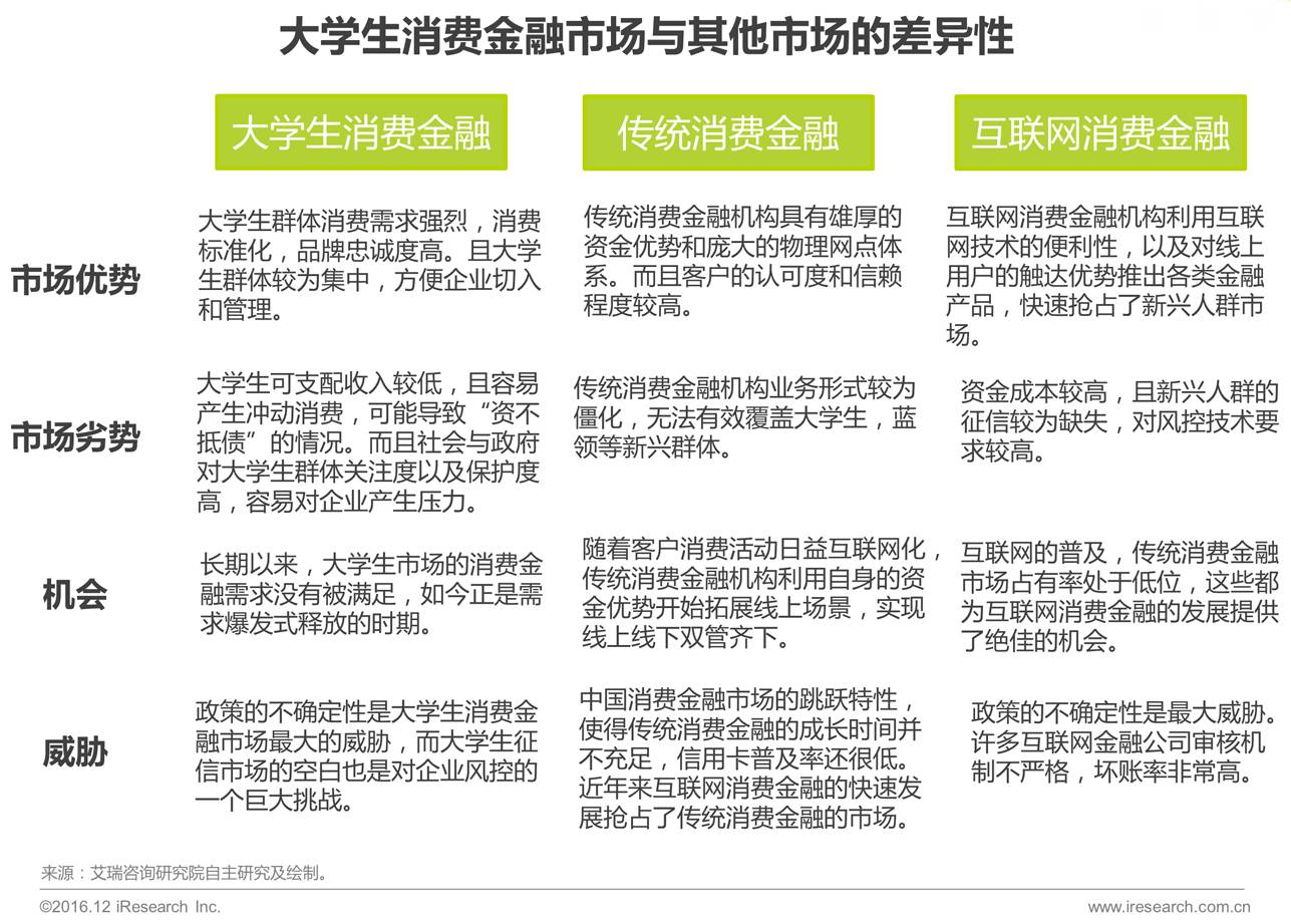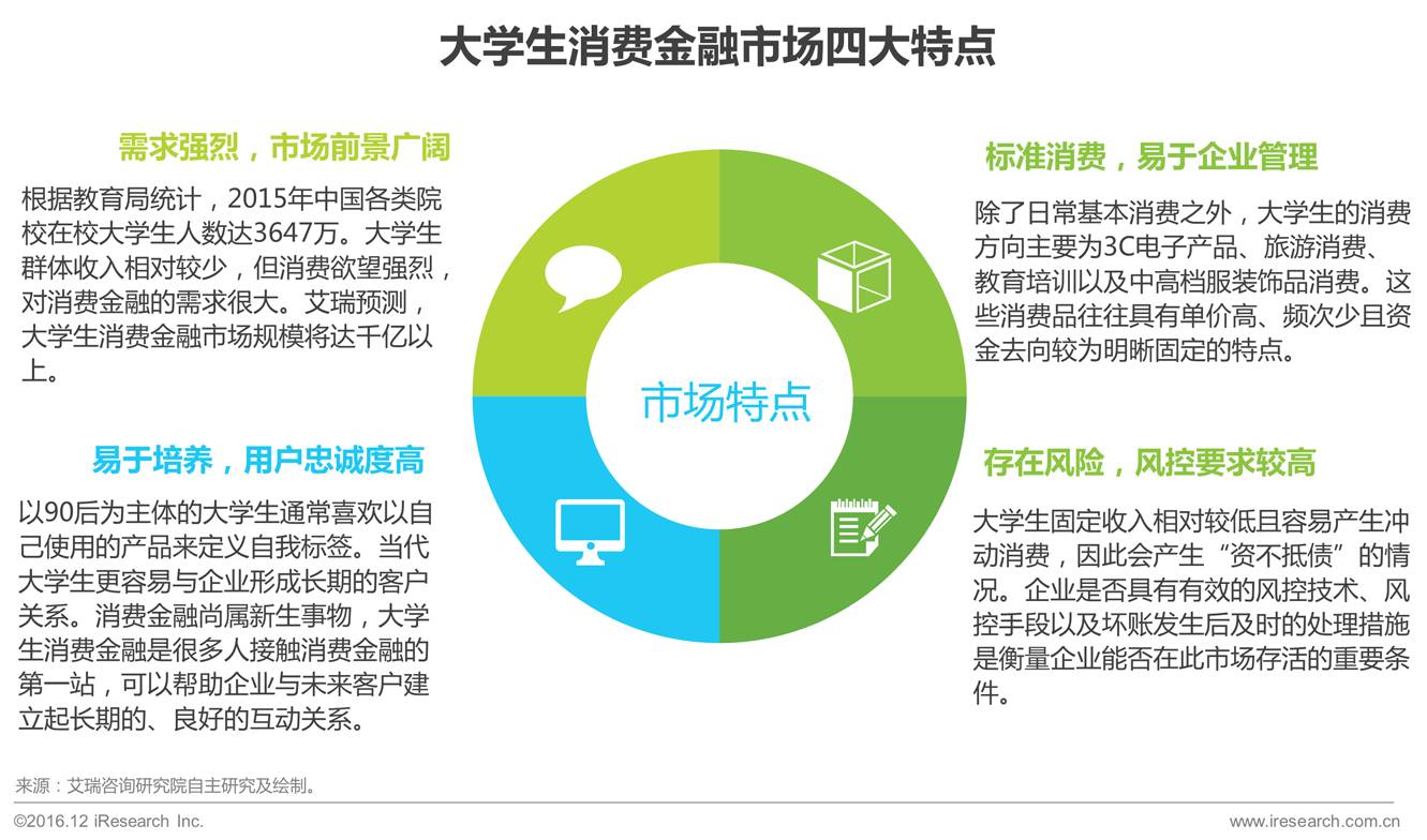 2016年互联网消费金融行业增长迅速,众多企业纷纷布局,而大学生作为消费金融的主力军之一,却长期以来被传统消费金融忽视,其市场爆发能力不容小觑。