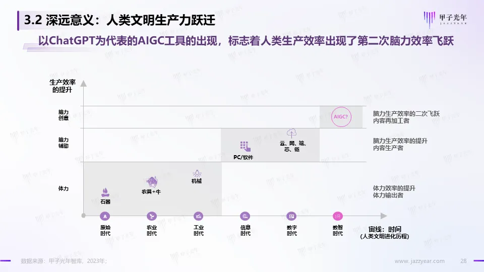为了研究这些问题,为了给行业探索并提出一些新的符合当下人工智能技术发展的方向建议,为了给AIGC行业发展提供一些分析方法、评估体系和研究模型,甲子光年智库开展了本次AIGC的专项研究,并尝试推出这份AIGC市场研究报告。