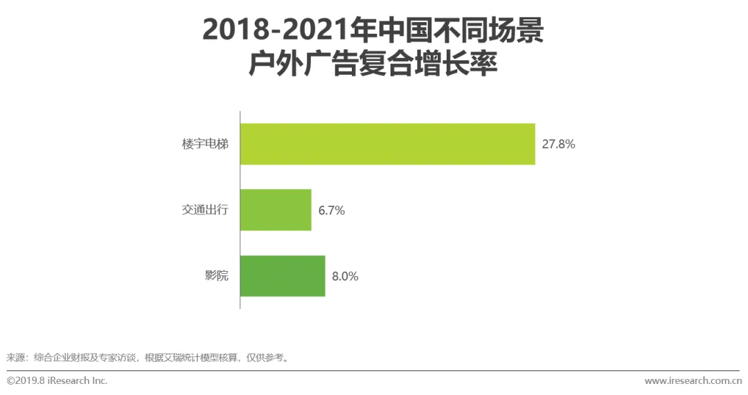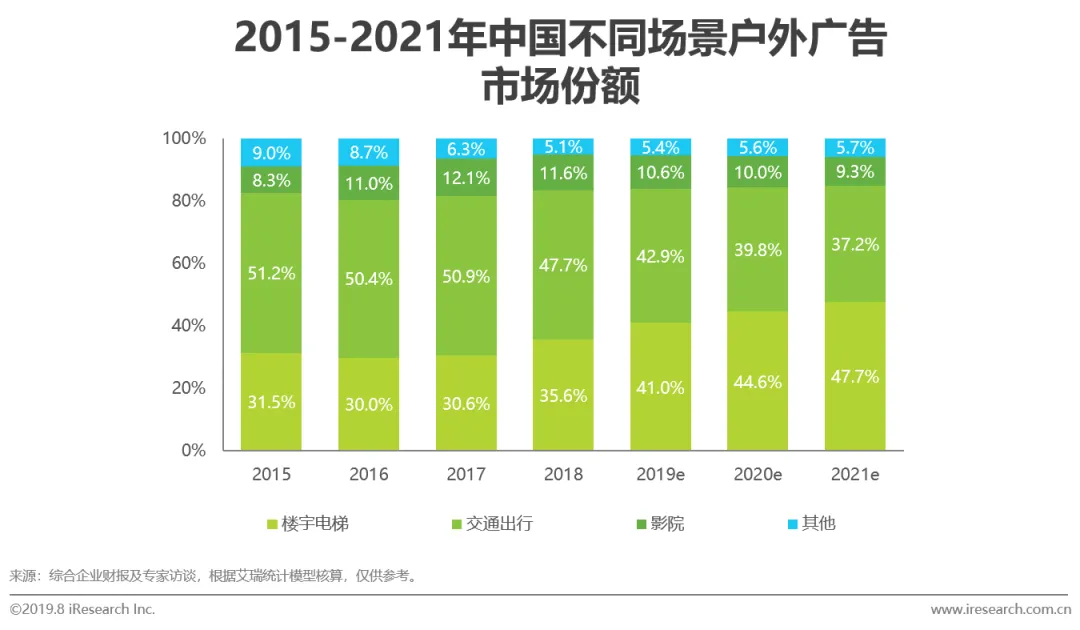 楼宇电梯、交通出行和影院是户外广告头部场景