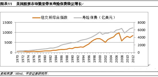 美国寿险公司经历过两次利率风险,但都没有对寿险业产生很大的影响。第一次是在1940年,即第二次世界大战期间,美国经历了一次利率下滑,保险监管机关相应地降低了责任准备金评估利率,造成保险公司准备金提高,对寿险公司产生了一次冲击。第二次是在1990年。美国寿险公司在80年代高利率环境下销售了一些高预定利率更缴产品。1990年市场利率逐步降低,保险监管机关再次降低了责任准备金评估利率,公司提取准备金增加,对财务状况产生负面影响。对于多数寿险公司来说,由于资产负债匹配较好,这些损失被长期固定收益投资项目增值部分所抵消。对于一些资产负债管理较差的公司,由于投资收益低于保证收益而造成了亏损,出现了偿付能力危机。为保证寿险公司偿付能力充足,美国保险监管机关令他们增加资本金,或出售其业务,帮助部分公司度过难关。但是短期利率环境的变化对寿险保费的影响并不明显,这是因为寿险公司持有的债券仓位比较大,一般持有的固收投资在80%以上,因此利率环境短期的波动对于保险公司的债券配置结构影响不大。但是长期利率环境对于寿险公司保费的影响却很大。1、稳定的高利率环境对保险公司的寿险保费呈现正向贡献以1年国债为例,1970-2000年,美国市场利率环境维持在5%以上水平,与此对应的是寿险保费呈现单边上涨的过程。我们可以这样理解,保险公司投资组合基本不存在较大的再投资风险。尤其是1985-2000年期间,利率市场波动较小,稳定的高利率环境对于保险公司的投资更显重要,这一期间保费的增速也较高。2000年后1年期国债进入低利率环境时代,长期低利率环境使得保险公司的再投资风险增加,理财类保险产品投资组合的整体收益率是下降的,因此2000年之后,美国寿险公司的保费增长相对缓慢,而且波动较大。在这其间的2004-2008年,利率回升,保费呈现阶段性增长,2008年利率达到低点,保费负增长达到峰值。我们发现1970-2012年其间寿险保费增长曲线与其间纽约交易所综合指数的曲线在形状上具有相似性。我们认为由于保险资产属于金融资产的重要组成部分,同时也与同期的GDP呈现同向相关性。尤其是1985年后,养老金发展较为迅速,因此美国寿险公司保费增长与股市指数变化表现为较强的相关性。我们认为出现这种情况的原因为美国保险购买人对金融市场的波动比较敏感,整体看保费变化滞后资本市场一年变化。这种敏感性在金融危机发生时候表现的更加明显,一旦金融危机造成普通老百姓金融资产缩水,赚钱效应消失,美国普通居民就会减少在保险上的投入。2000-2001年、2008年情况都是如此,从时间上看,保费对资本市场的变化反应要慢一些,这个滞后的时间是一年。2008年金融危机发生,2009年保费才呈现明显的下滑状态。实际上我们在对资本市场波动进行研究的过程中,我们并未考虑资本市场波动对存量保险资产的影响,我们只是研究资本市场变化对保费流量的影响。这说明资本市场波动对当年度保费的影响,更多的通过影响消费者的购买行为而发生作用。经济稳定增长为人均可支配收入的最基本来源,而资本市场与经济稳定增长也呈现正相关关系,因此在经济繁荣的事情,资本市场收益率水平较高,在这一时期,保险行业也会呈现繁荣的景象。但是往往在这一时期,却为未来保险行业埋下隐患。核心原因是保险公司在繁荣时期,往往会增加高利率保单的销售规模,在经济繁荣的时期,投资收益能够覆盖高利率保单的成本,但是一旦经济进入低利率环境,利差就会缩窄甚至出现负利差。24-64岁人群是收入稳定且对保险具有明显需求的人群,因此如果在某一历史时期,24-64岁人群在人口中的比例呈现上升或者稳定的局面,这一期间的保费增长就会表现出较强的动力。这一时期的人群往往在为65岁以后储备养老资金和医疗保障,因此对保险的需求最大,而且有能力去购买保险。在利率下降的初期,并不会对保险公司保费产生太大影响,这是因为在利率下降过程中,保险公司新增保费虽然配置在收益相对较低的债券上,但是保险公司投资组合的收益率仍然高于市场,因此这段时期保险产品的收益率反而跑赢同期市场。但是一旦利率进入低利率或者零利率环境并持续一段时间,保险公司投资组合中的高收益资产占比越来越小,保险公司利差损风险越来越大,再投资风险增加,这个环境对保险业的杀伤力更大,如90年代之后的日本。资本市场变化往往与经济环境和GDP变化相关,因此不会单独对保险保费产生影响,而保险投资组合收益率变化短期不会对保费变化趋势构成影响。社会保险制度对于商业保险的影响很大,台湾、美国都是典型的法定保险程度较低,从而推动普通民众增加对商业保险,包括对高端服务、养老保障和理财的需求。注:本文源自平安证券非银金融首席分析师缴文超所作研究报告,原题《低利率专题——海外(美、日、台、英)保险研究》,有删节调整。