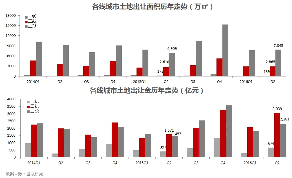 • 一线地价刷新高,二线金额近翻倍,三线面积涨最快。