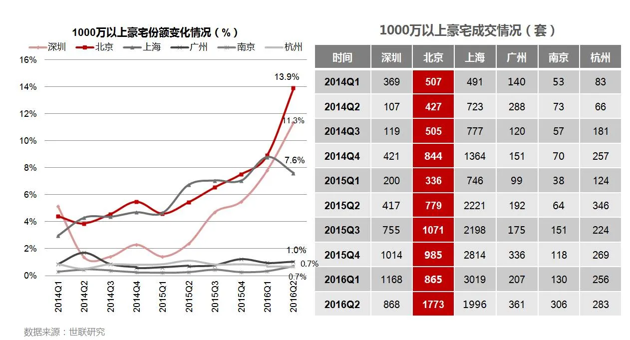 • 以深圳为例,一千万以上豪宅在总成交中的占比,已经由2011年的不足1%骤升至11.3%。