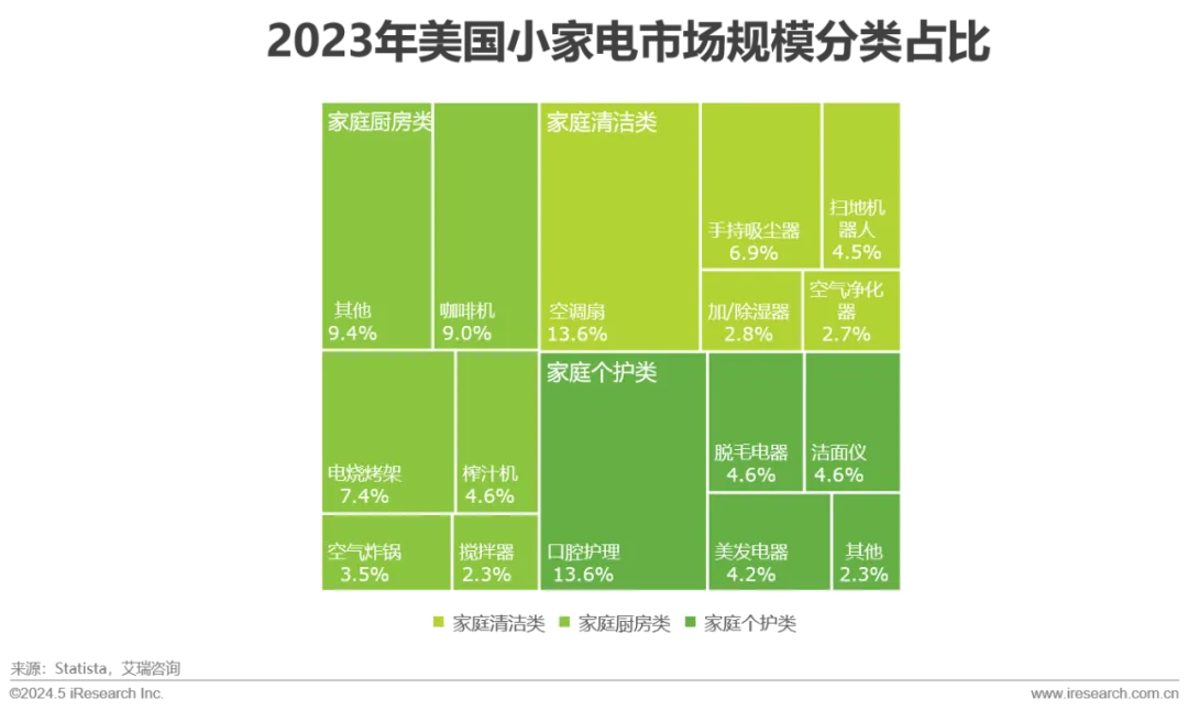 作为经济发达市场的主要国家之一,美国家庭的高家庭住房面积以及相对高频的住房变动场景。对小家电市场的“家庭清洁品类”具备较强的支撑作用。从其网络购物的年龄群体特征来看,Z时代作为最为核心的消费群体,在社交媒体的营销变现方面,以及多元化消费需求场景下,诸如户外社交对应的烤炉/烤架,智能消费对应的电动牙刷等细分单品均具备更高的产品接受度。