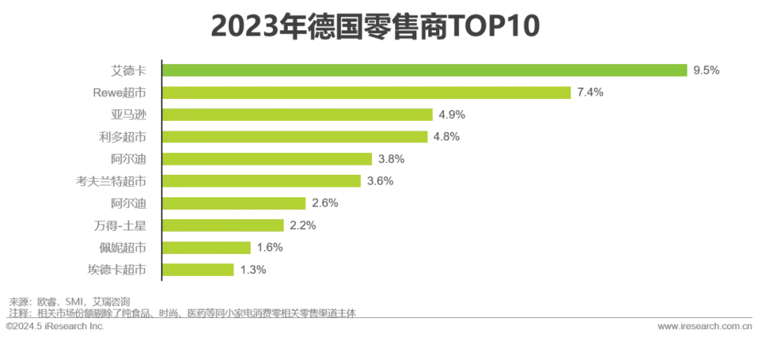 在2020-2022年期间,疫情对于英国及德国本土市场的线上化渗透率确实存在积极影响。但是传统零售渠道的渠道优势是长期存在的。通过对比分析,除了“亚马逊”作为独立电商零售平台,其他玩家均为西欧地区较为传统的零售玩家,并且这一类型玩家均具备较强的电商线上运营能力。所以从市场进入的角度来看,传统零售渠道商是西欧地区的重要战略合作伙伴。