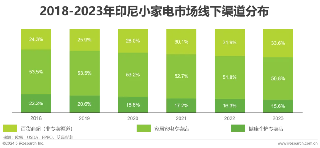 相较电商渠道更加成熟的中国及欧美市场,印尼市场同其他东南亚市场类似,线下消费渠道的比重更高。但是相对不同的是,印尼市场在“小家电”品类下,专卖店渠道具备更强的消费影响力。从品牌商的角度来看,家具家电类整体类目在电商渠道渗透的弹性空间更强。同时,考虑到小家电品类的电商物流履约服务要求相对大家电家具稍弱,所以可以考虑将电商渠道作为市场进入的优先路径。