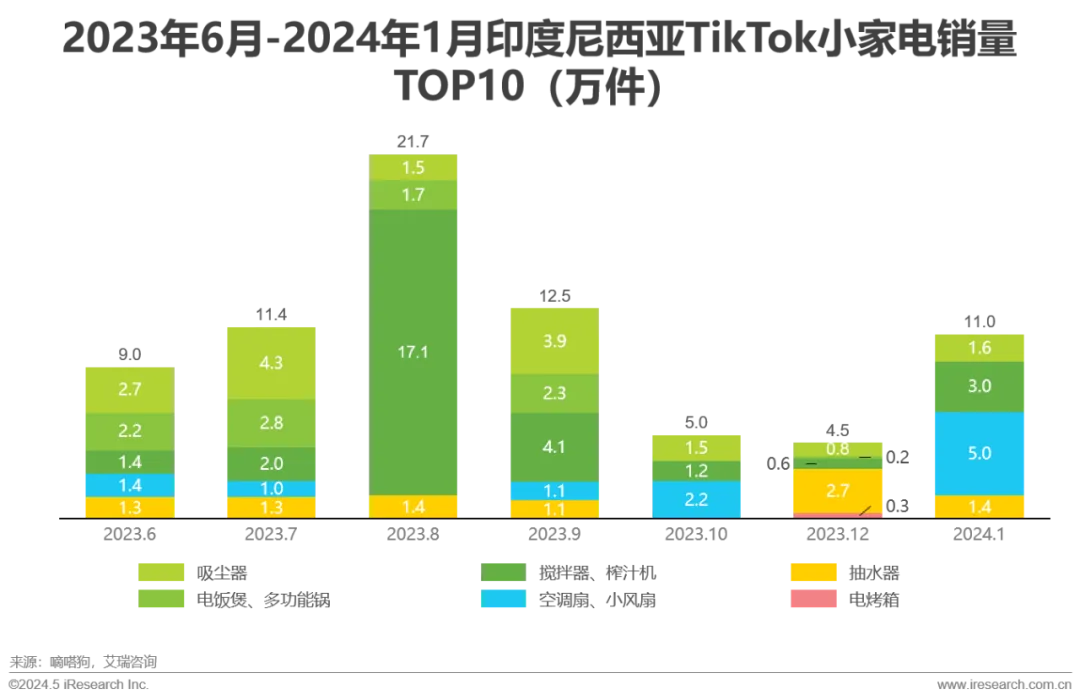 从营销用户视角来看,以及广告主的在网络营销投放比重来看,社媒营销的相对规模在新兴市场中亦算是突出,比较适合小家电新兴品牌作为初期的资源投放路径。另外,值得关注的是23年9月份因为印尼政府的新31号条例,以TikTok为典型代表的社交电商平台不的不暂时关闭,目前已通过合资合并的方式得到解决。但是,整体东南亚市场其实都存在基于本地化市场保护的政策变动性。从品牌主角度来看,多元化的渠道布局以及加强需求市场本地化投入,是值得考虑的长期策略。