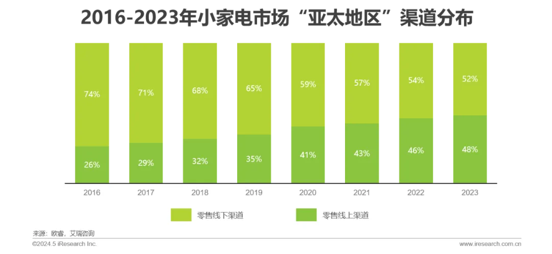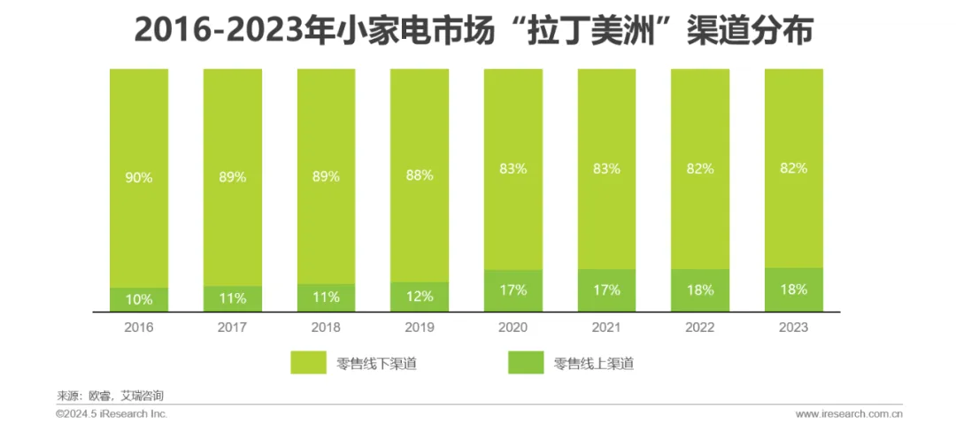 考虑全球区域下,驱动线上化销售渠道的相关营销及供应链配套仍存在差异性。所以从渠道变化来看,“亚太地区”、“北美地区”的线上化及配套相对更加成熟,这也为小家电市场的快速渗透提供了相对基础。而西欧及拉丁美洲等线上化渠道,在疫情期间亦存在明显的扩张趋势,但是相对比例仍然较低,所以其市场进入,仍需要投入较高的本地化资源以及相关线下渠道合作的针对性策略。