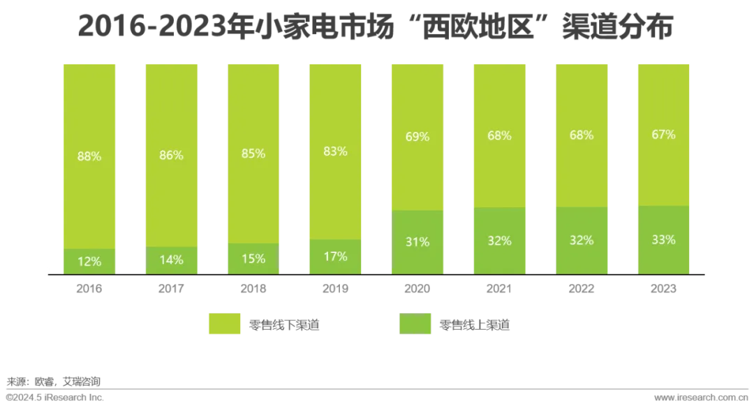 通过分析欧美韩等发达国家的相关数据,可以发现疫情因素对海外市场的远程办公影响,在2023年仍具备一定的留存效应。对应居家场景时间的有效增长,也带动了家居环境改善需求下,小家电消费的持续增长。另外考虑到以法国为代表的高福利国家,生活质量改善文化思潮,在短期带来的对“居家+户外”消费场景均产生了较为明显的溢出效应,间接促进了小家电、户外用品的消费需求。