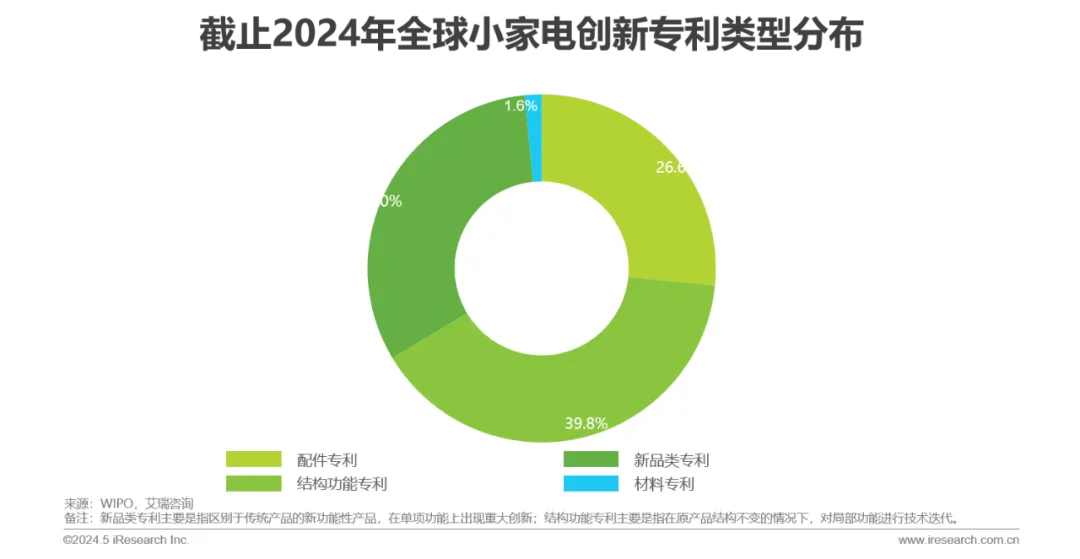 通过分别对比全球大家电/小家电市场的“技术专利”和“外观设计专利”的数量占比,可以发现大家电市场自2010年至今,其技术性专利占比始终保持在23-33%的相对区间。而小家电市场虽然自2010年至2019年,亦区域改范围区间。但是自疫情起始,其技术专利占比快速增长至42-45%的范围。相对而言,我们认为在小家电市场的内卷开始集中在基于“实用功能性”更迭的技术创新。并且,未来来看该因素能够在企业主体层面,帮助其实现有效份额获取,及产品品牌溢价的进一步提升。
