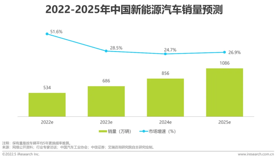 2025年,中国新能源汽车销量将突破1千万辆,占比超30%