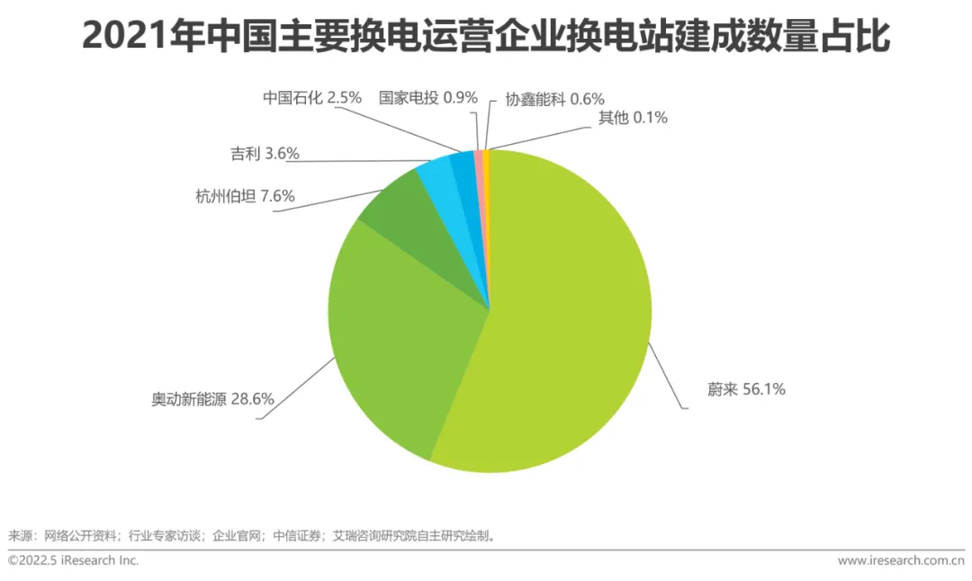 2021年蔚来换电站建设速度最快、规模最大,占比超50%