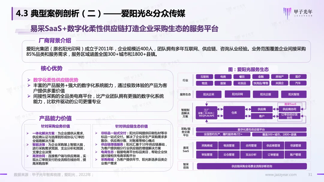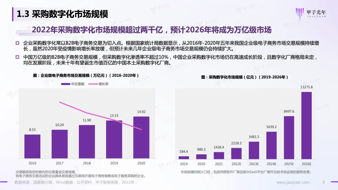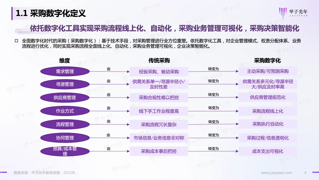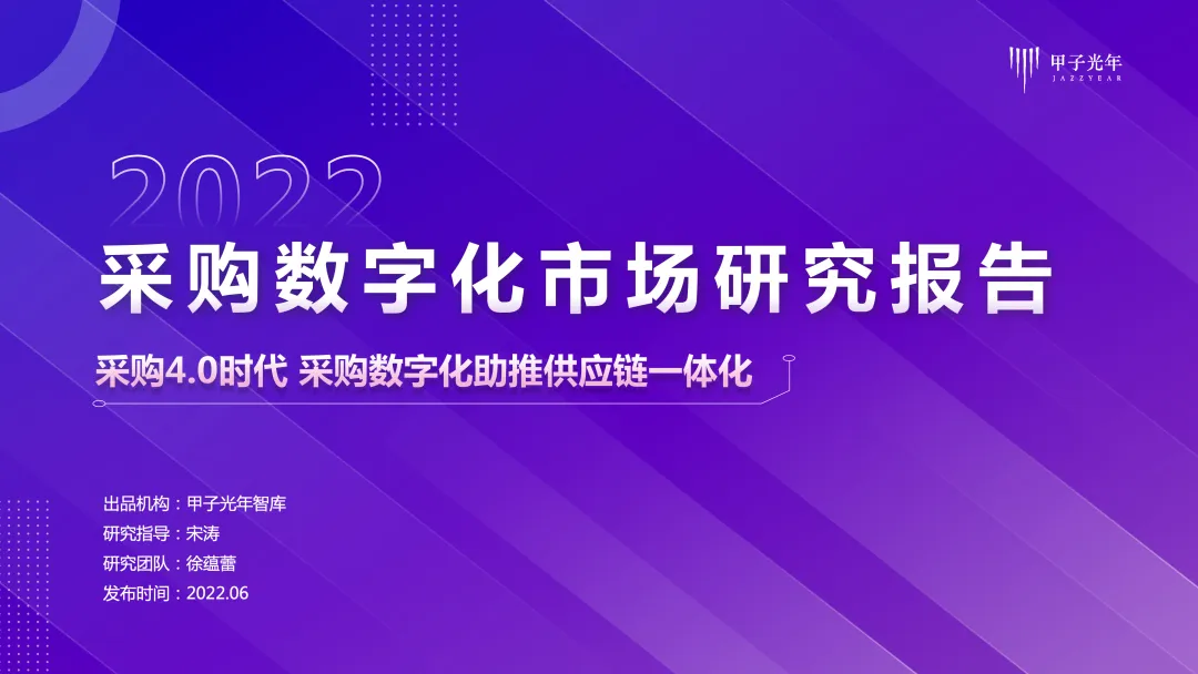 甲子光年智库推出“采购数字化系列专题研究”报告之【深度报告】《采购数字化市场研究报告:采购4.0 时代 采购数字化助推供应链一体化》: