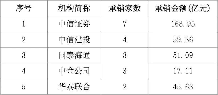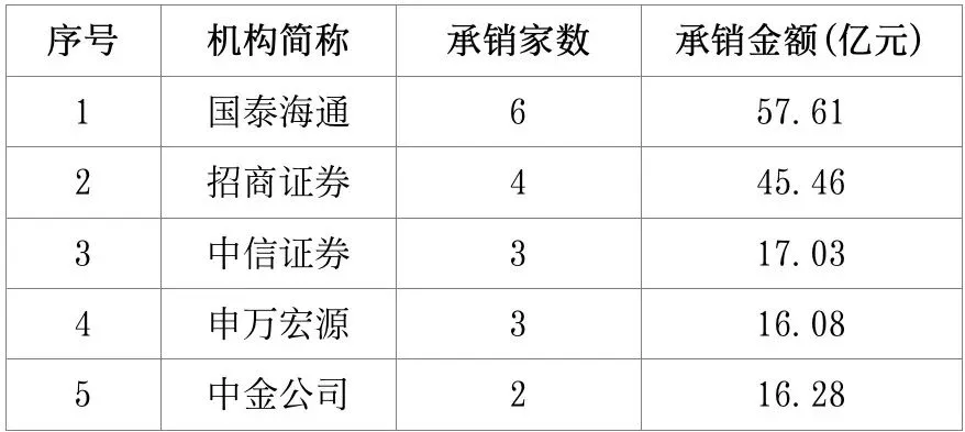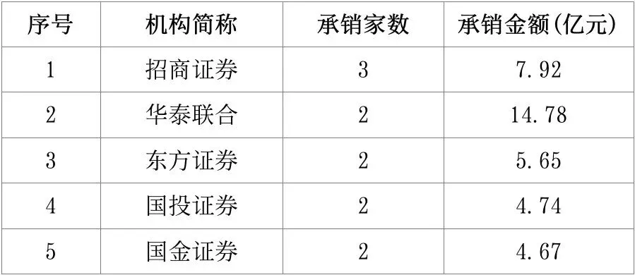 北交所持续深化服务创新型中小企业的核心定位,承销排名前五的券商依次为招商证券、华泰联合、东方证券、国投证券、国金证券。
