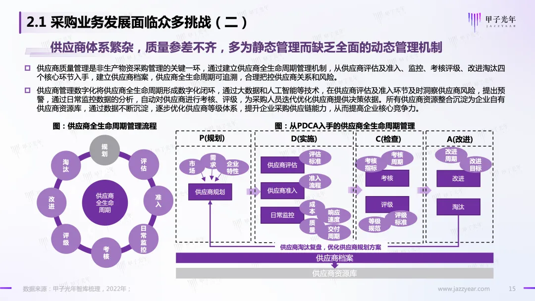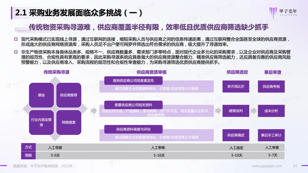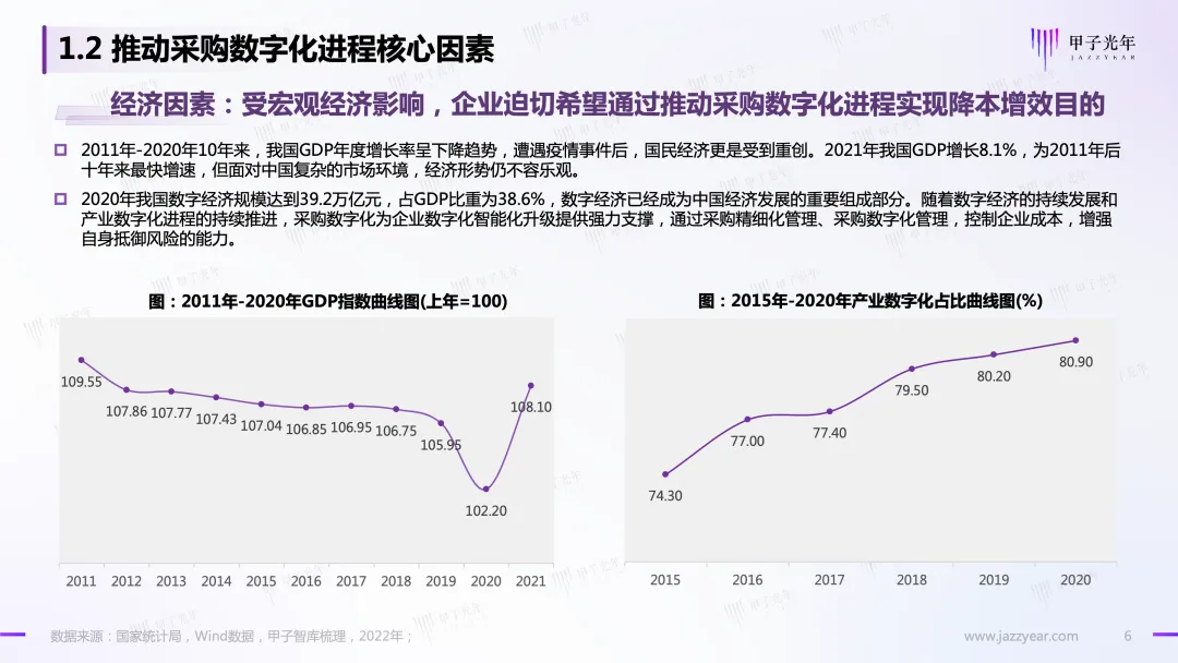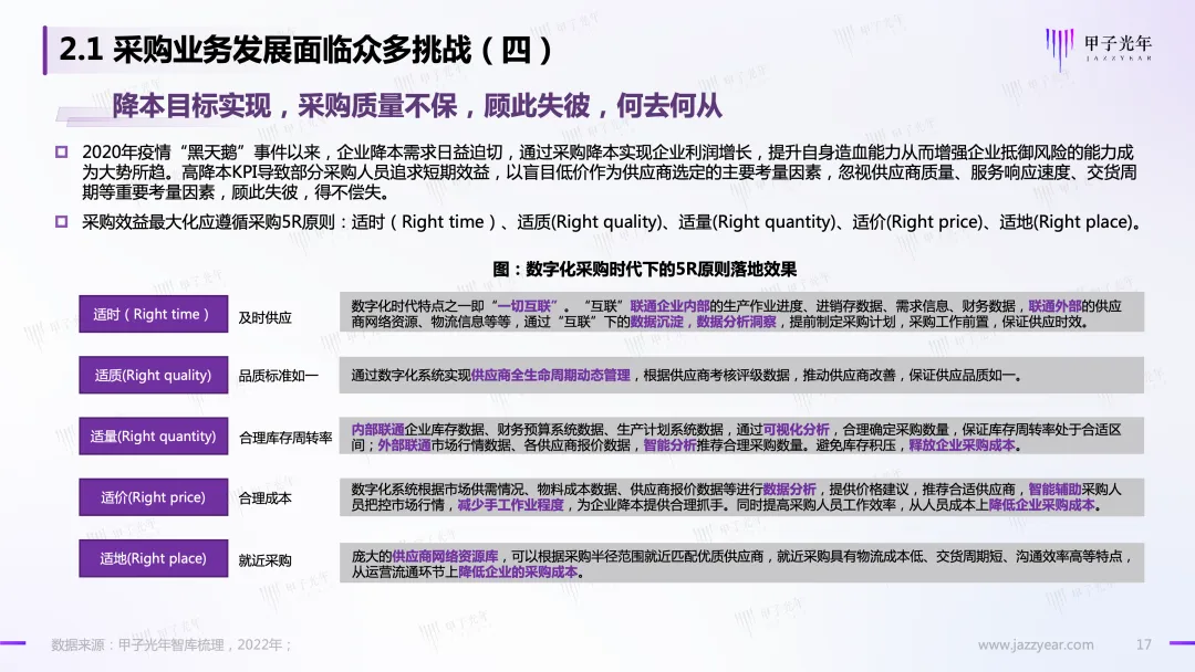 另一方面,市场内外部环境日更月异,竞争愈发激烈,企业降本增效原生动力持续增强,对内:采购环节承载着企业“降本增效”的责任与目标;对外:采购是保证供应链连续性、企业经营稳定性的关键环节。