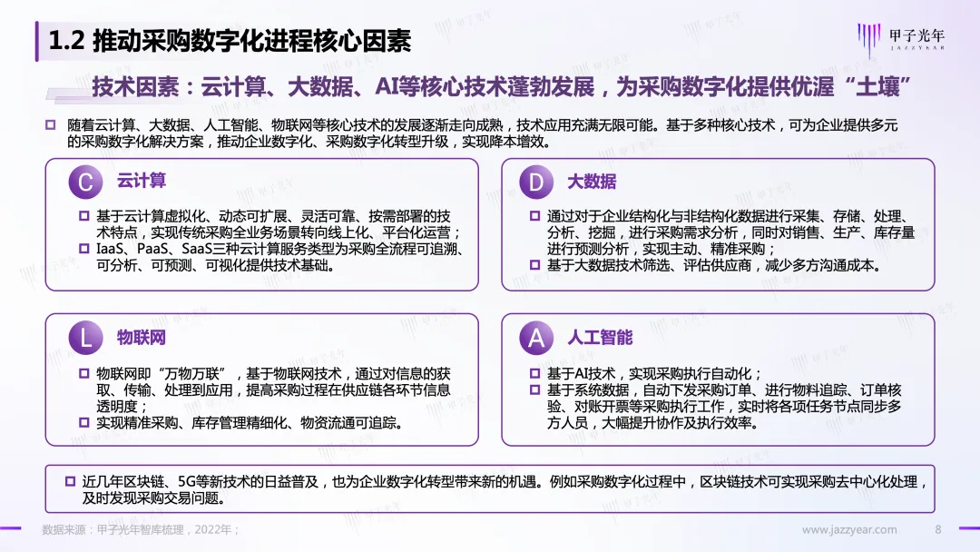 甲子光年智库推出“采购数字化系列专题研究”报告之【深度报告】《采购数字化市场研究报告:采购4.0 时代 采购数字化助推供应链一体化》: