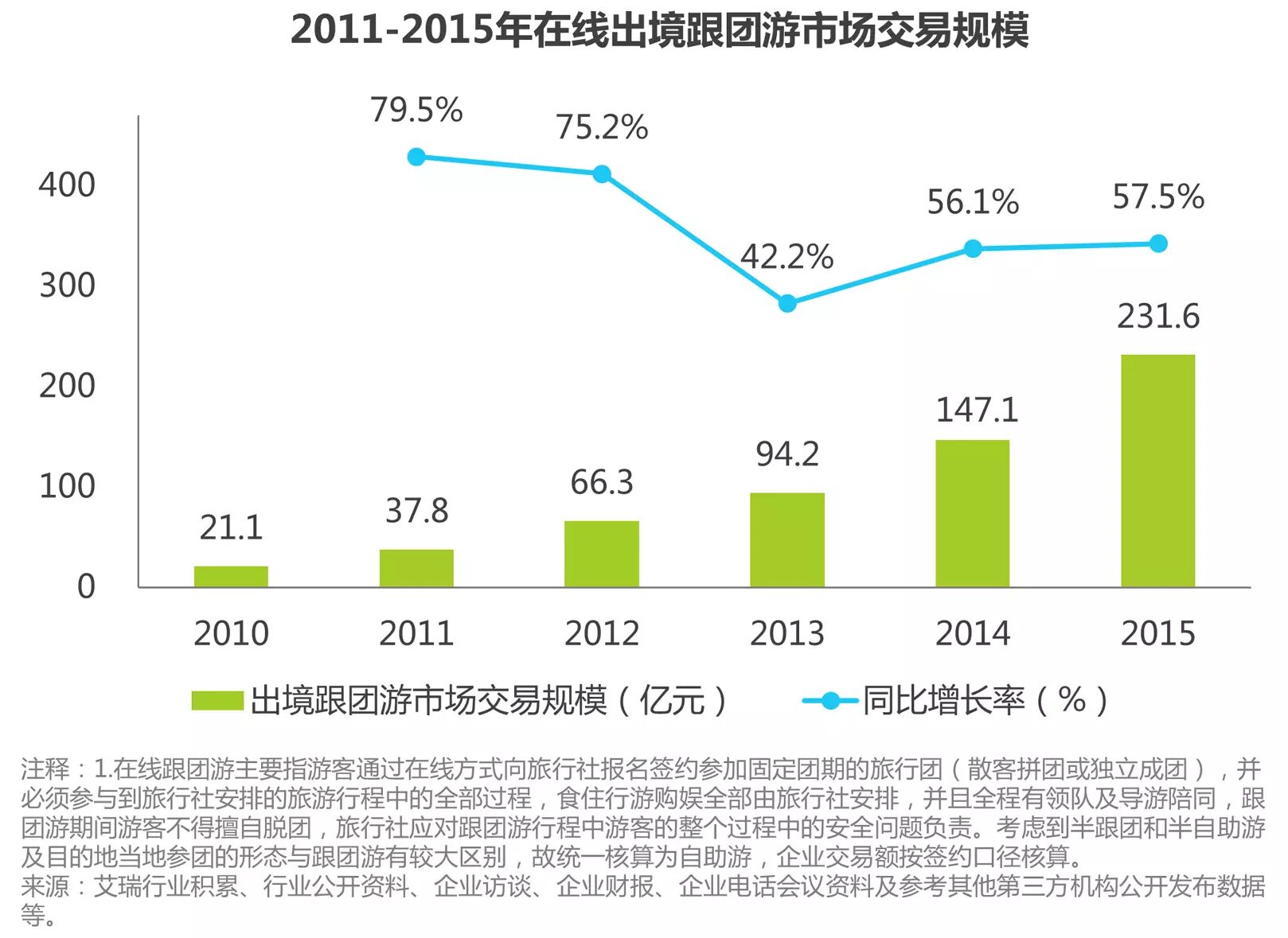 2015年在线出境跟团游市场交易规模达231.6亿元