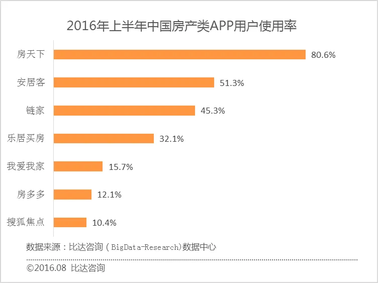 房天下用户使用率最高,其次是安居客。