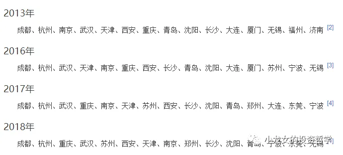 二线城市,自然要选择一些有发展潜力的城市了。大家可能留意过一个“新一线城市的评选”,通过几个指标商业资源集聚度城市枢纽性城市人活跃度生活方式多样性未来可塑性五大指标。这几个指标有个权重和算法,最后评选出了15个新一线城市。成都连续多年都名列第一,当然杭州也是多年第二,后面的几个省会城市的排名就略有变化。