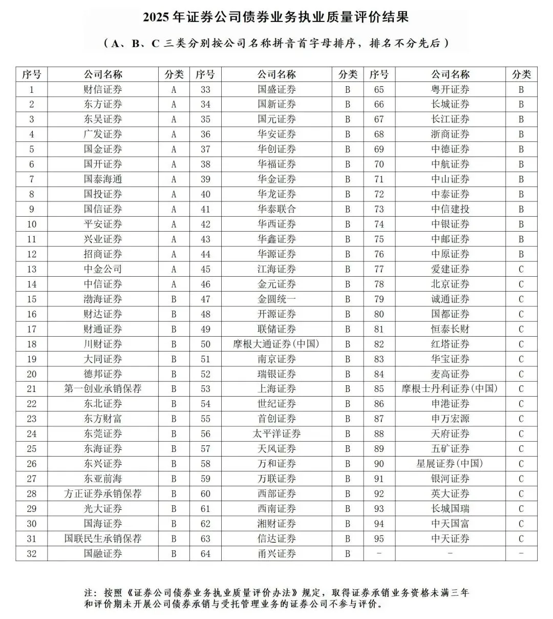 2025年度券商债券业务执业质量评价,14家券商获得A类