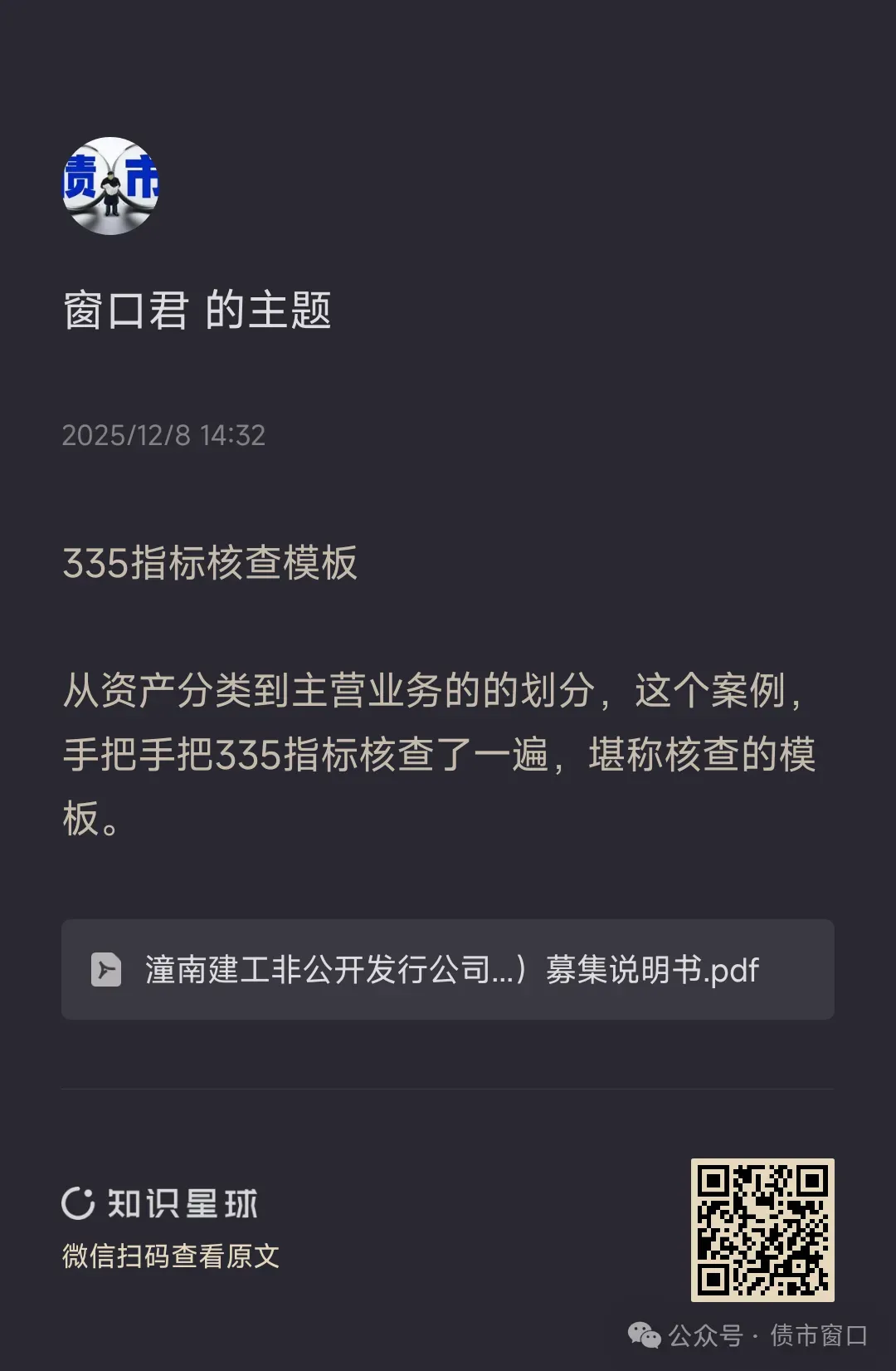 债市窗口知识星球上传了:335指标测算参考、产投资产整合建议书模板、CMBS参考资料模板、去核心企业供应链ABS案例集合和方案模板、收费收益权ABS案例汇总等干货,欢迎扫码加入。