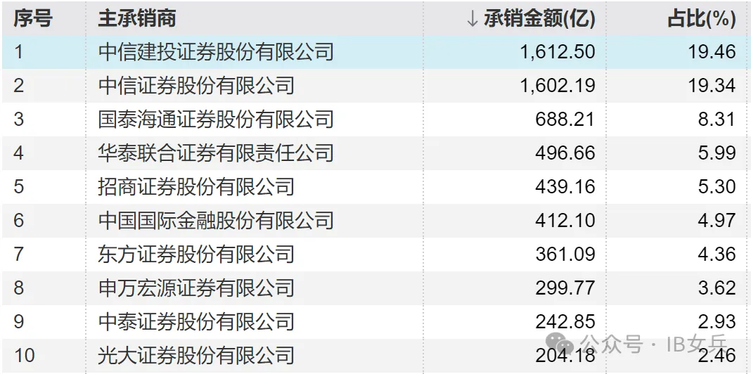 已到年底,又到了各家券商最关注的承销业绩排名公布的时候了,根据wind统计,截至2025年末,各家证券公司-公司债承销排名如下: