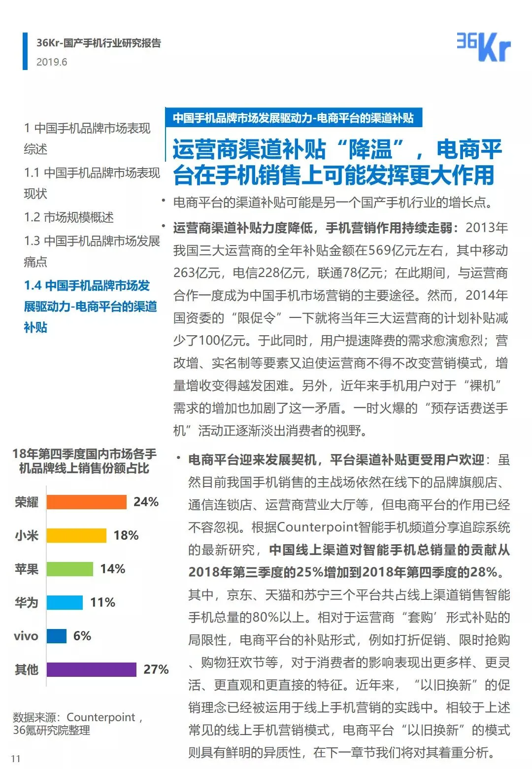中国智能手机存量市场迎来新变化,电商渠道补贴可能成为中国手机品牌销量增长的新动力。
