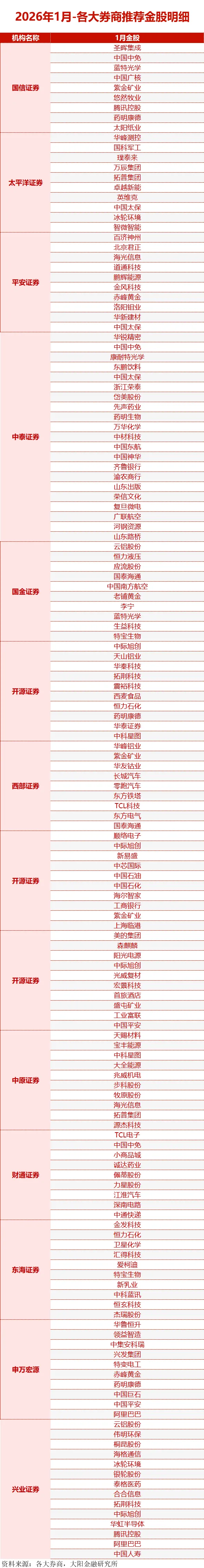 给朋友们。新年伊始,万象更新。为在股市中并肩前行的朋友们,准备了一份特别的“开年礼”——券商1月金股名单,希望能为您的2026年投资之路,点亮一盏前行的灯。