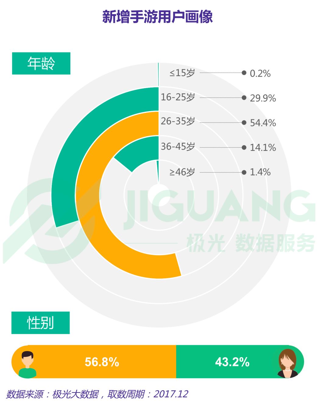 2017年新增手游用户中,54.4%为26-35岁用户,女性占比43.2%
