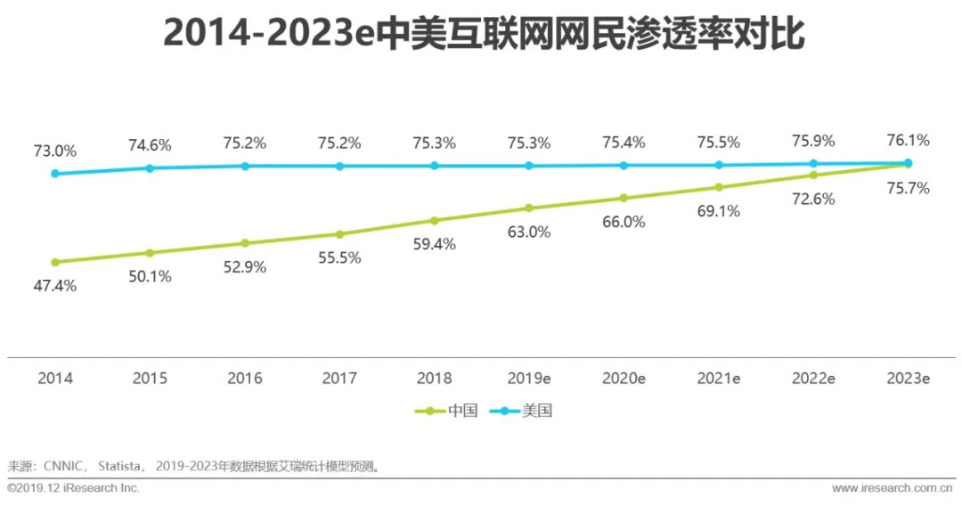 中国对MarTech的需求不断接近美国,且有较好的营销环境MarTech市场的发展,与互联网网民及网络广告市场的发展变化有直接关系。从需求端来看,MarTech市场主要反映了企业对存量用户价值的需求,企业在营销上可获取的新增用户越少,越注重已有用户的全生命周期价值的挖掘。而美国从2014年至2018年的网民渗透率变化基本稳定,维持在73%-75%,这也直接推动了美国市场对MarTech的重视和实践。而随着未来中国网民渗透率的增长逐渐放缓,中国企业对MarTech的需求也将愈加强烈。从供给端来看,MarTech市场的落地应用与营销广告的数字化程度有直接关系,会拥有更加丰富成熟的用户数据生态,同时从中美营销广告的媒体渠道分布来看,中国的网络广告规模在所有媒体广告中的占比已经达到74.2%,超过美国的49.7%。也就是说,未来中国的营销环境和生态将为MarTech市场的发展提供更多的支撑和保障。