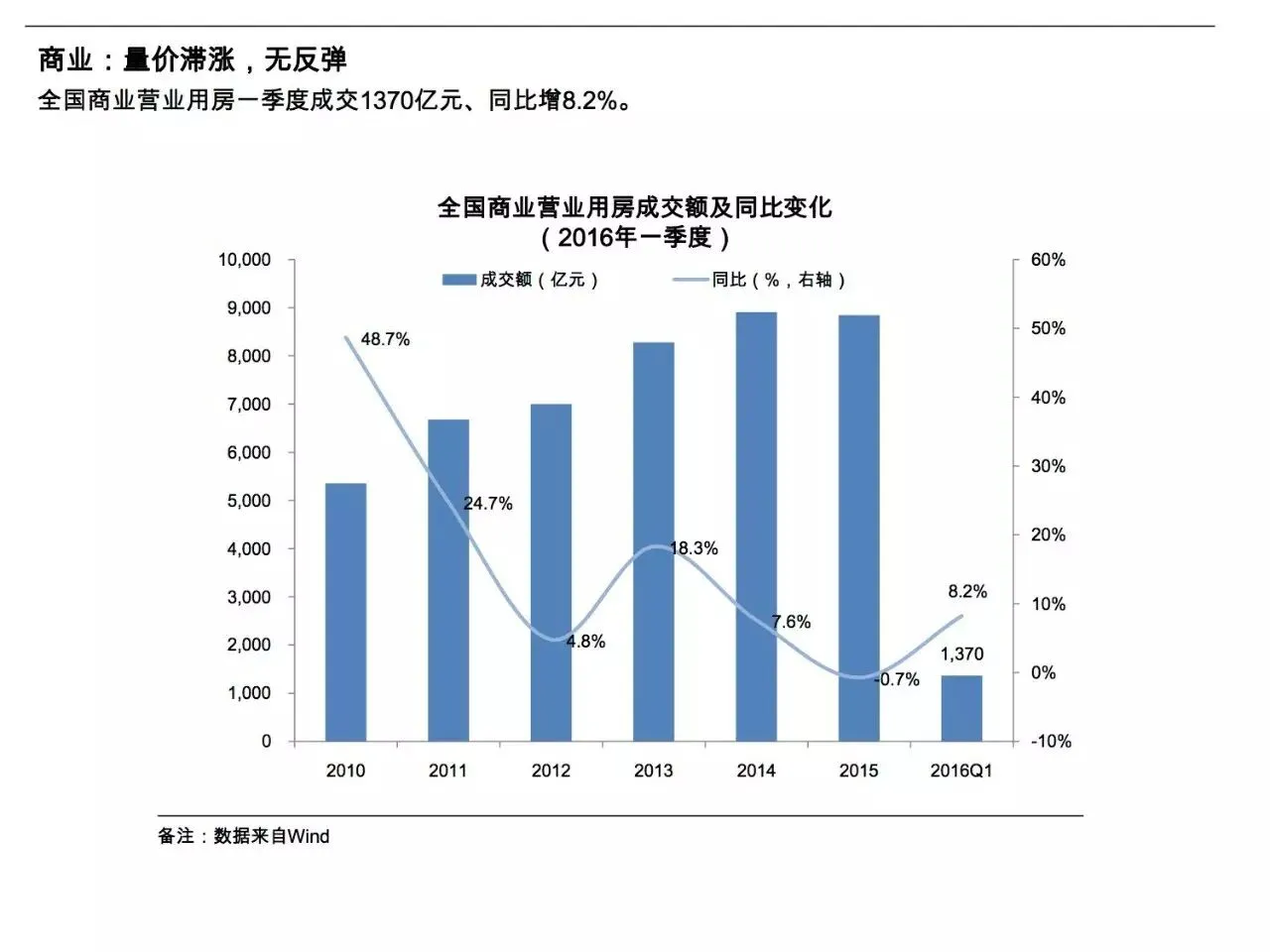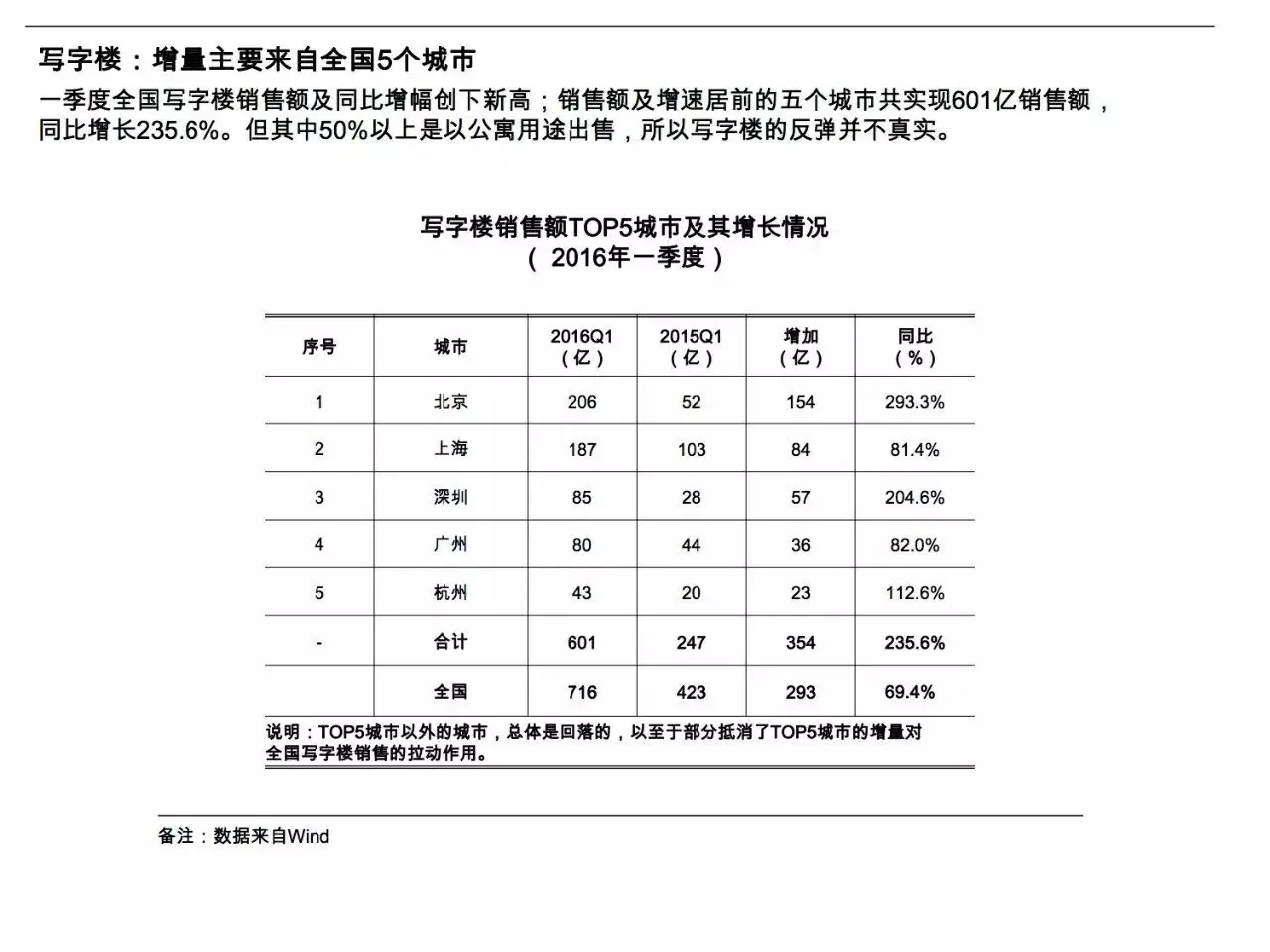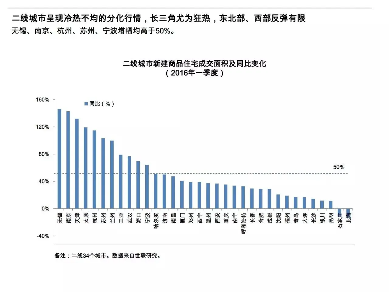 2016年一季度市场研究报告 ▏反弹真弹?持续可续?1行业整体回顾一季度增量,主要来自一二线住宅市场的量价反弹总结1. 一季度的反弹,来自上一轮政策刺激下的延续,结构分化的趋势不会逆转,冰火共存成为常态。 2. 行业投资、新开工等领先指标的走势尚未回稳,取决于后市资金面、政策面对需求端的拉动作用是否会持续。2住宅市场展望一线熄火、二三线取决于未来的政策走向总结1. 一季度,住宅的增量,主要来自一线城市+卫星城、二线城市,三线城市基本无反弹;2. 一线城市已经出台收紧政策、市场熄火,需求不会流向二线;二线也存在政策收紧预期,同样,一旦熄火,需求也不会流向三线;3. 二线、三线城市未来走势,取决于政策:二线取决于是否会加强调控;三线市场要好转,取决于农民进城购房和身份平等化、以及棚改货币化的力度。3商办市场展望普遍痛点、难以反弹总结1. 商办市场整体不看好,库存积压严重,去化时间更长;2. 实体经济回落和电商冲击下,商办经营依靠传统的收租模式难以持续;3. 从国际规律看,全球商用物业交易额80%集中在不超过20个城市。国内城市的商办物业过剩,已成为普遍痛点。4国际借鉴成熟市场的启示总结1. 中国房地产市场的下半场,进入大都市圈化及行业规则与国际接轨的探索建立期,增量市场已不足以反映行业未来趋势;2. 未来两到三年,是摸着石头过河的新模式诞生期,行业政策的新布局会逐步明朗;3. 从历史经验来看,过渡期内,行业及政策的波动、反复,都是正常的,保持平常心。房地产业在经济发展中的地位无可撼动。【世联行集团市场研究部】让更多人享受真正的地产服务