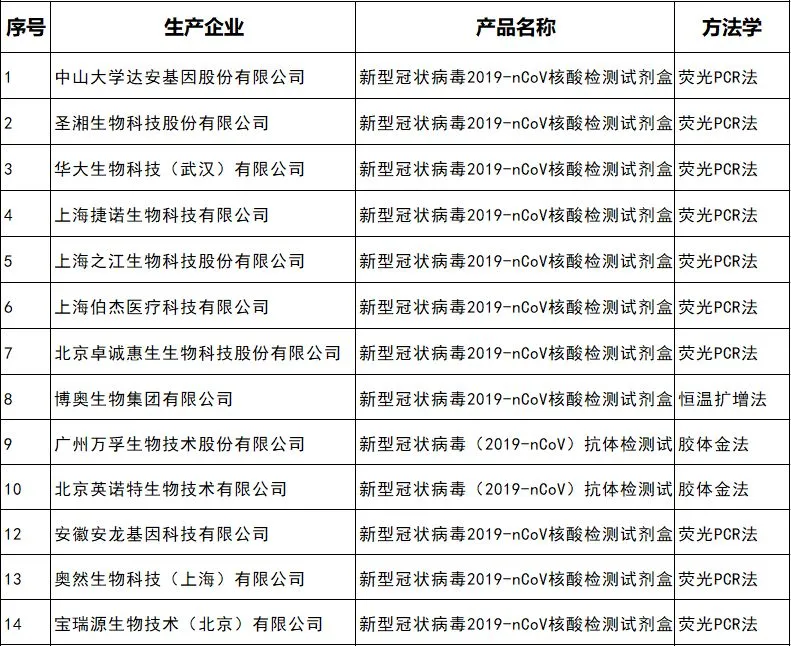 附件一:新型冠状病毒检测试剂盒获证企业汇总