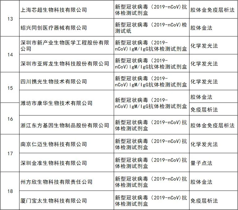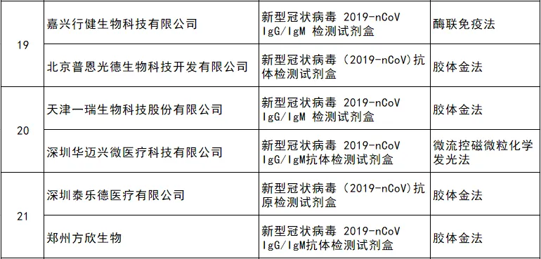 附三:21家新型冠状病毒免疫检测试剂生产企业名单