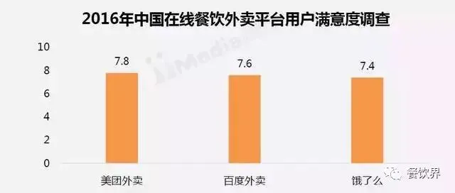 在用户对外卖平台的满意度调查中,美团外卖得到7.8分,百度外卖得到7.6分,饿了么得到了7.4分,可以看出三大外卖平台的实力非常旗鼓相当,平台继续发展核心将逐渐转为挖掘消费者需求上。