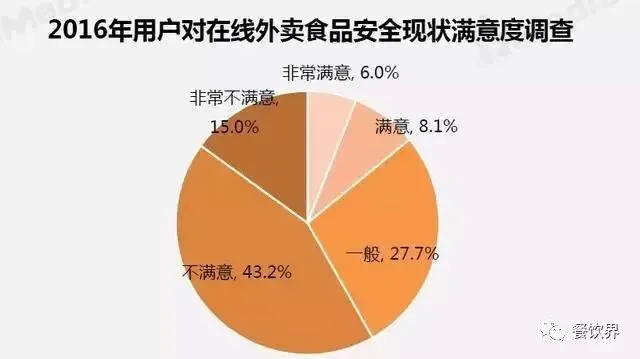 据报告,有43.2%的用户对于在线外卖食品的安全现状表示不满意,而满意的用户只有8.1%,对比十分悬殊。